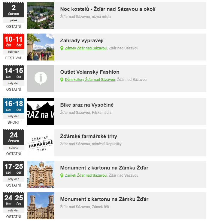 Program akcí v okolí 2023 - Ubytovna Žďas