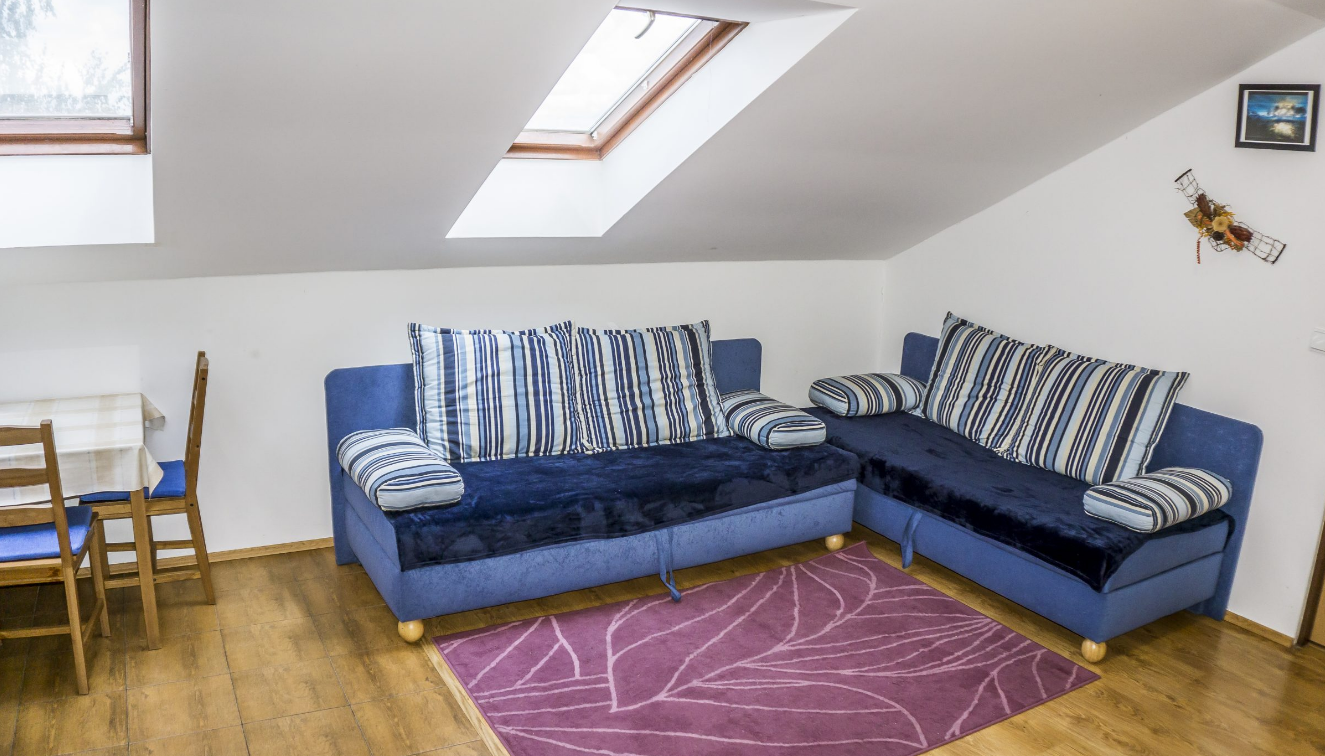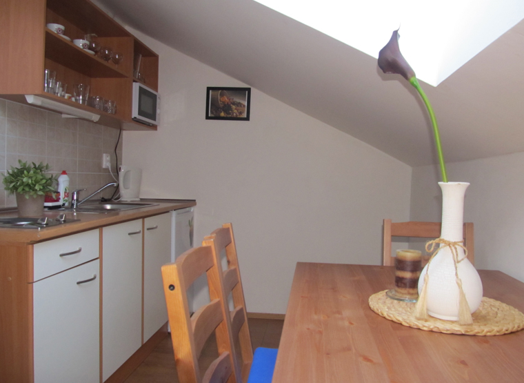 Penzion poskytuje podkrovní apartmány, které Vám nabízí trojlůžkové a pětilůžkové pokoje, které disponují vlastním sociálním zařízením, vybaveným kuchyňským koutem a televizí. V penzionu je možnost WIFI připojení.